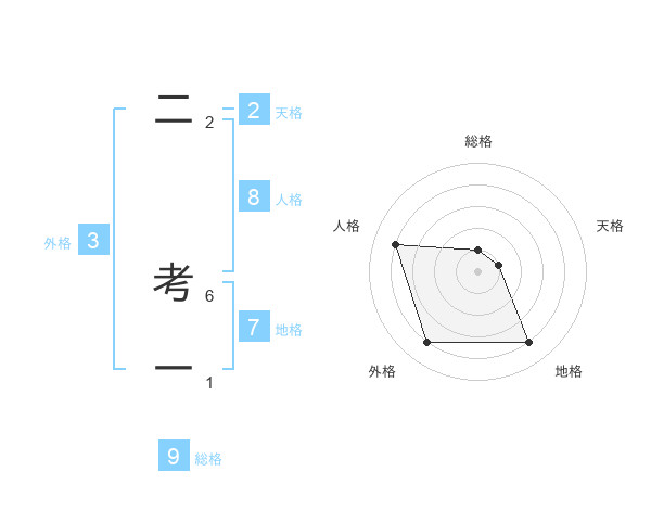 二 考一さんの総格は9画の1点!
