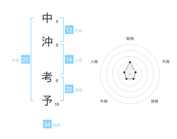 中沖 考予さんの総格は34画の2点!