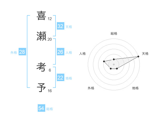 喜瀬 考予さんの人格は26画の2点!