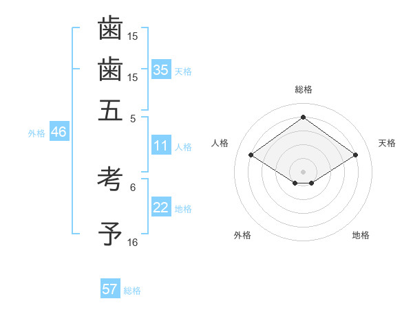 歯歯五 考予さんの総格は57画の4点!