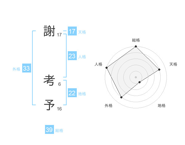 謝 考予さんの総格は39画の5点!