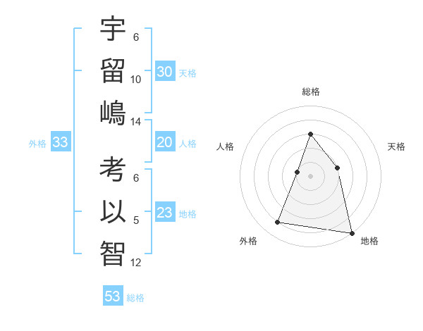 宇留嶋 考以智さんを姓名の画数から五運を鑑定