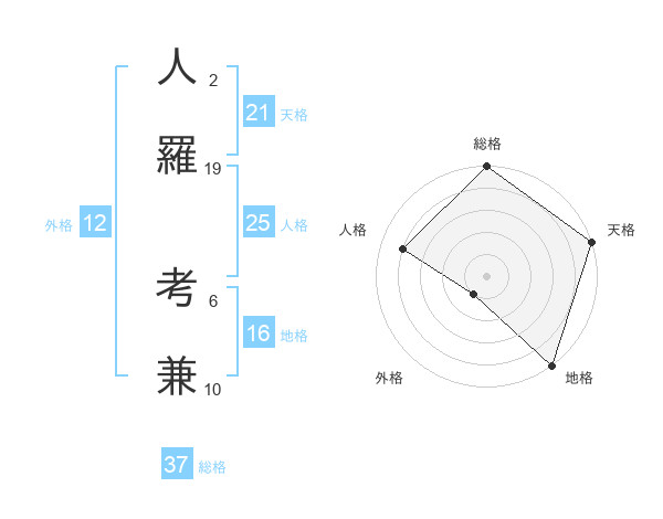 人羅 考兼さんの総格は37画の5点!