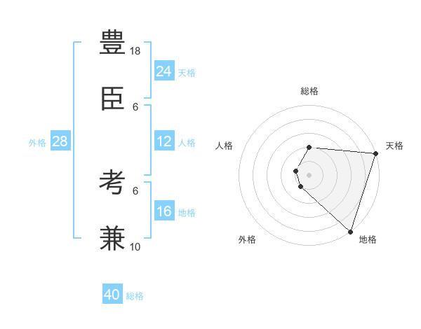 豊臣 考兼さんを姓名の画数から五運を鑑定