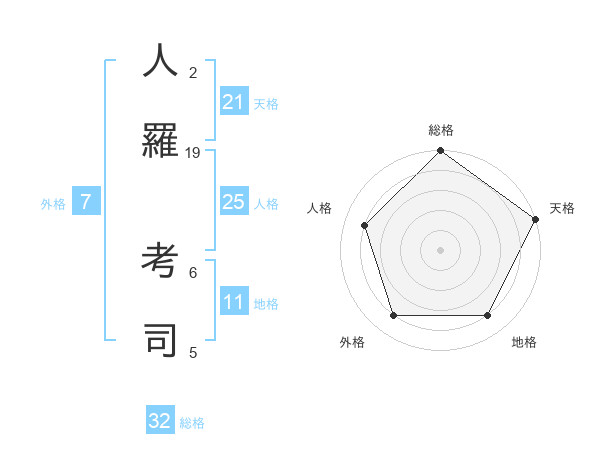 人羅 考司さんの天格は21画の5点!