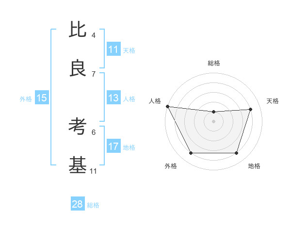 比良 考基さんの天格は11画の4点!