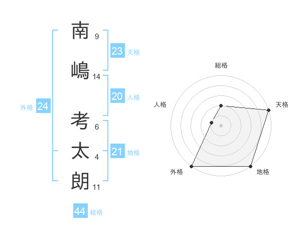 南嶋 考太朗さんの天格は23画の5点!