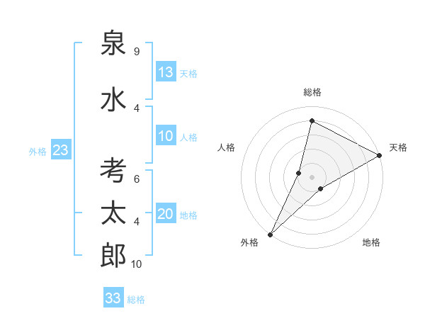 泉水 考太郎さんの外格は23画の5点!