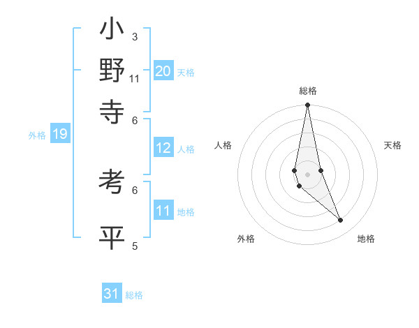 小野寺 考平さんの総格は31画の5点!