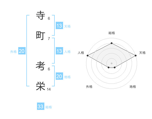 寺町 考栄さんの天格は13画の5点!