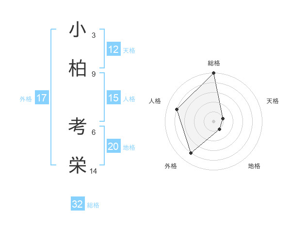 小柏 考栄さんの天格は12画の1点!