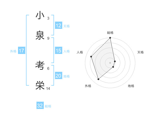 小泉 考栄さんの総格は32画の5点!