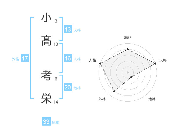 小髙 考栄さんを姓名の画数から五運を鑑定