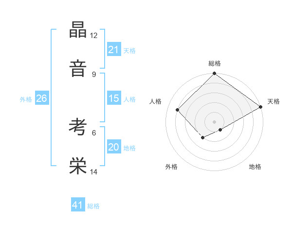 晶音 考栄さんを姓名の画数から五運を鑑定
