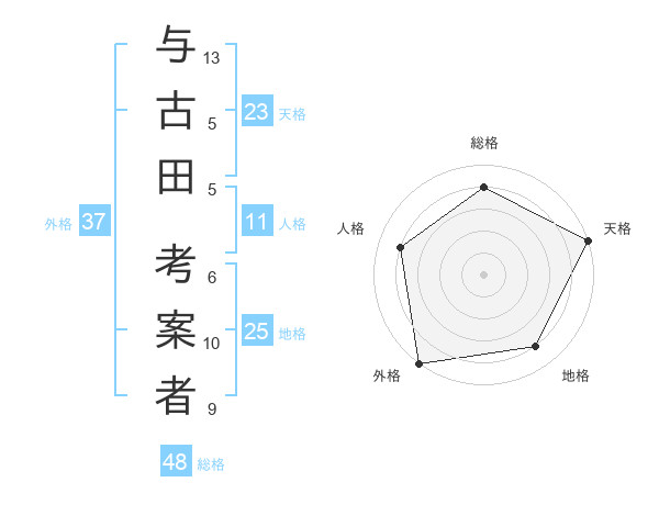 与古田 考案者さんを姓名の画数から五運を鑑定