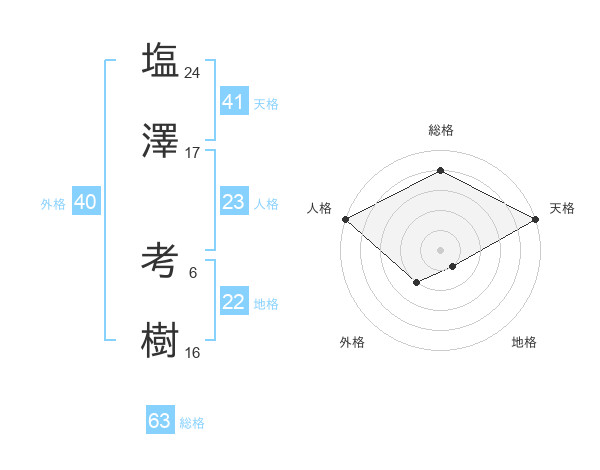 塩澤 考樹さんを姓名の画数から五運を鑑定
