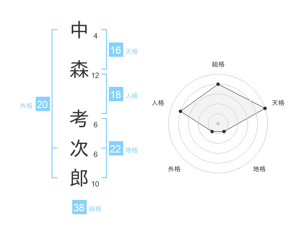 中森 考次郎さんを姓名の画数から五運を鑑定