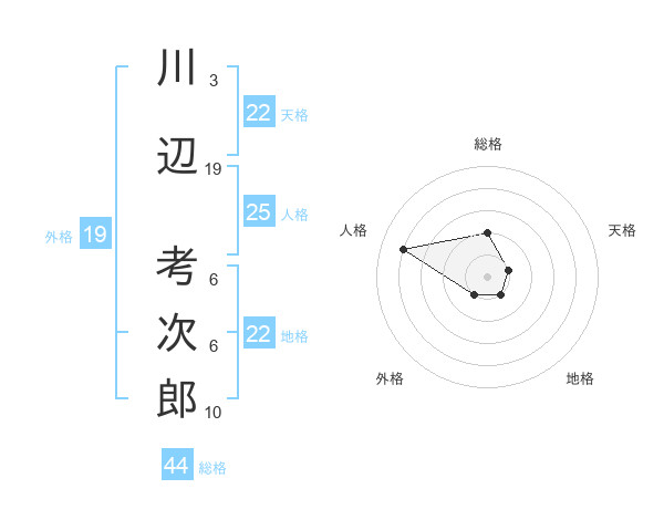 川辺 考次郎さんの天格は22画の1点!