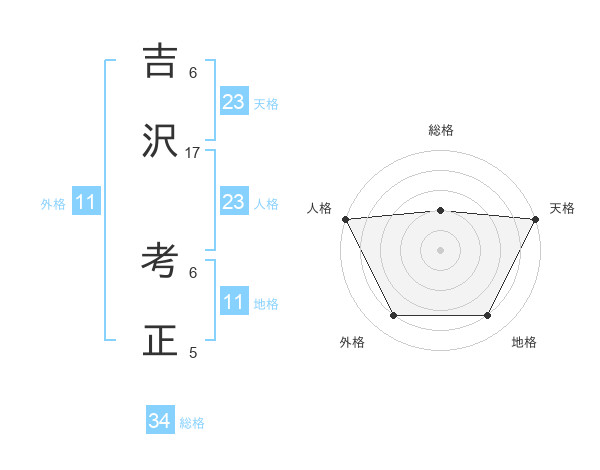 吉沢 考正さんの天格は23画の5点!