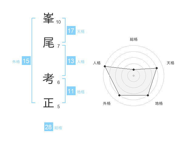 峯尾 考正さんの天格は17画の4点!