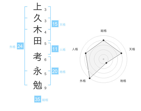 上久木田 考永勉さんを姓名の画数から五運を鑑定