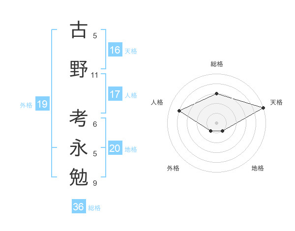 古野 考永勉さんを姓名の画数から五運を鑑定