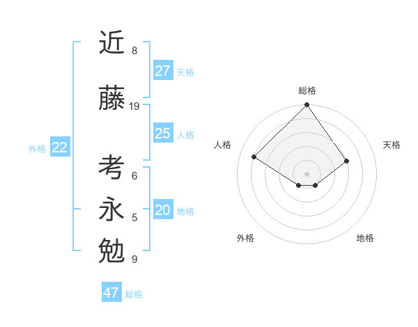 近藤 考永勉さんを姓名の画数から五運を鑑定