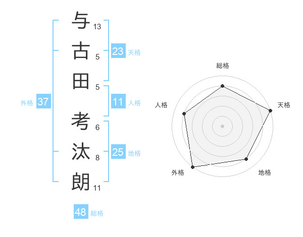 与古田 考汰朗さんの外格は37画の5点!