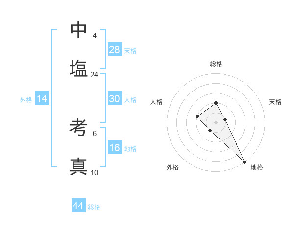 中塩 考真さんの総格は44画の2点!