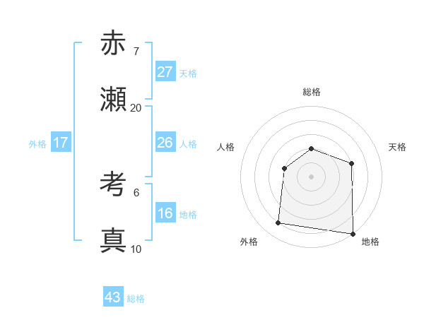 赤瀬 考真さんを姓名の画数から五運を鑑定