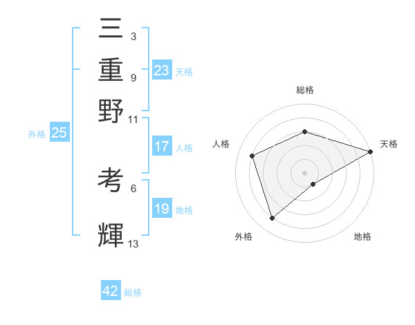 三重野 考輝さんを姓名の画数から五運を鑑定