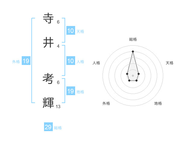 寺井 考輝さんを姓名の画数から五運を鑑定