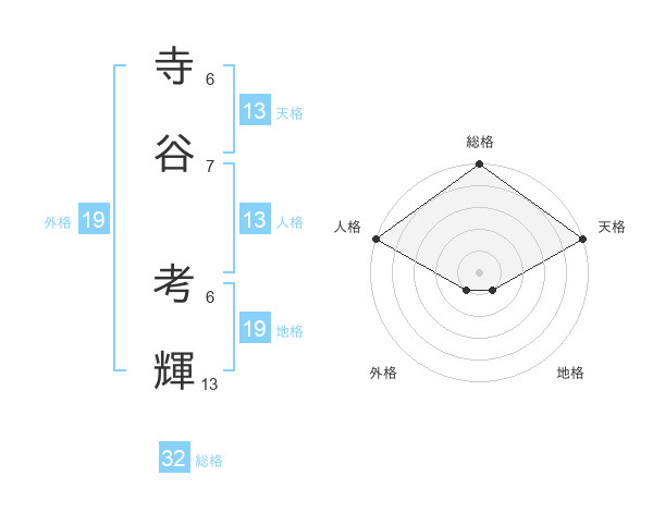 寺谷 考輝さんの総格は32画の5点!