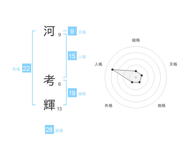 河 考輝さんの総格は28画の1点!