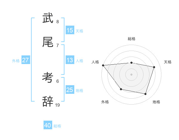 武尾 考辞さんを姓名の画数から五運を鑑定