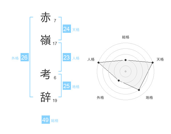 赤嶺 考辞さんの天格は24画の5点!
