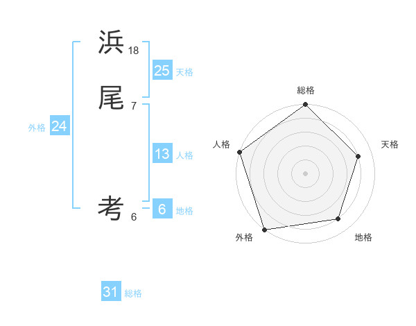 浜尾 考さんの総格は31画の5点!