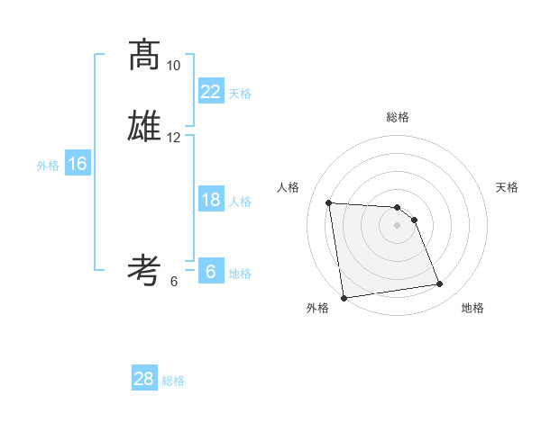 髙雄 考さんの総格は28画の1点!