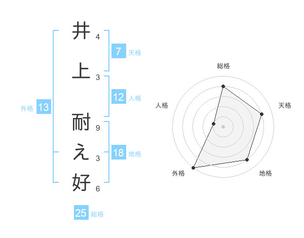 井上 耐え好さんを姓名の画数から五運を鑑定