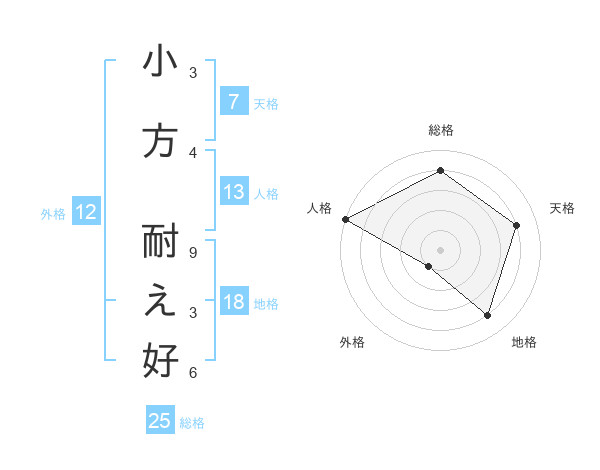 小方 耐え好さんの総格は25画の4点