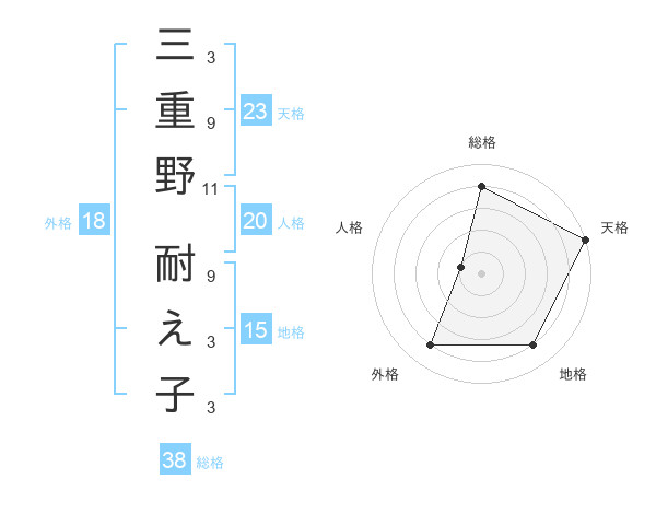 三重野 耐え子さんを姓名の画数から五運を鑑定