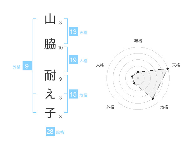 山脇 耐え子さんを姓名の画数から五運を鑑定