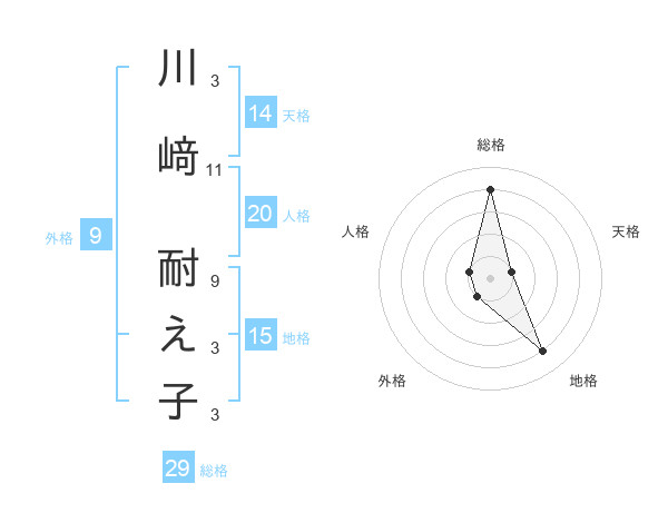 川﨑 耐え子さんの総格は29画の4点!