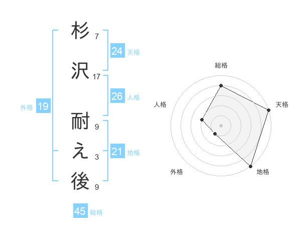 杉沢 耐え後さんを姓名の画数から五運を鑑定