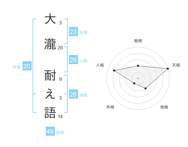 大瀧 耐え語さんの天格は23画の5点!