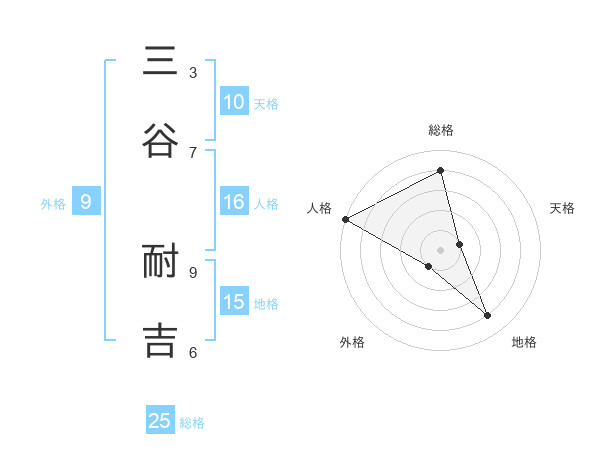 三谷 耐吉さんを姓名の画数から五運を鑑定