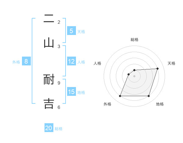 二山 耐吉さんの総格は20画の1点!