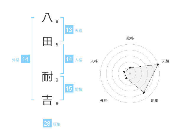 八田 耐吉さんを姓名の画数から五運を鑑定