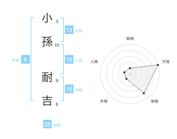 小孫 耐吉さんの天格は13画の5点!