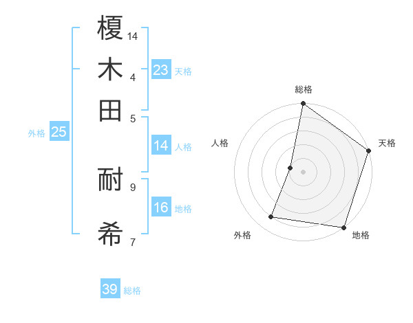 榎木田 耐希さんを姓名の画数から五運を鑑定